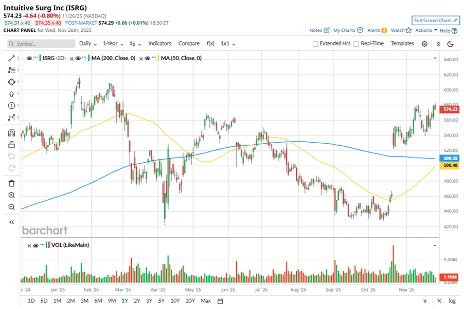 To confirm the bullish trend, ISRG has been trading above its 50-day and 200-day moving averages since late October.
