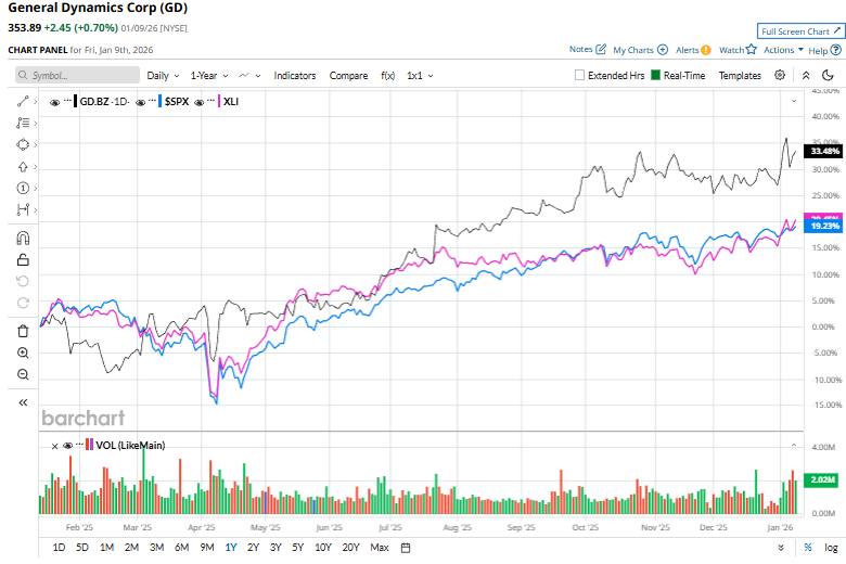 GD shares have surged 35.4% over the past year, surpassing the S&P 500 Index’s ($SPX) 17.7% gains and the Industrial Select Sector SPDR Fund’s (XLI) 21.9% gains over the same time frame.